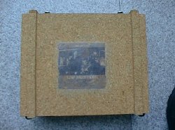 前面より カセットテープを入れるケースを改造してのボールケースです。 コルク質で出来ているため、前面部には特殊な糊で映画「ハスラー」の場面をセピアにし、薄く貼り付けてあり、同じ糊でコーティングしてあります。 |
