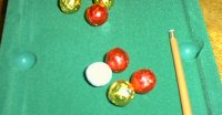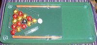 蛍光ボール 私はビリヤードの玉が好きだ。玉フェチとも呼ばれている。 かなり前の事だが自分で蛍光ボールというものを作ったことがある。 簡単に言うと手玉に東急ハンズで買ってきた蛍光塗料を塗り、ブラックライトで光らせるのだ。もちろん普通のゲームでは無理だがイベントなどにはいいかもしれない。 黄色と青の2種類作ったが、結果は失敗。月の表面のようにデコボコし撞くと蛍光の粉が剥がれ落ちるというまったく使い物にならない作品となってしまった。 その数年後雑誌にアメリカでブラックライトを照明にしたボーリング場の記事がでていたが、まぁビリヤードでは作る人はいないなと思っていた。 いたのである。 関東で有名なショップに行った時、そこの社長と話の中に「蛍光のボールが…」という話題が出た。 「えっ」と思い詳しく話を聞いてみるとやはり照明をブラックライトにして玉を光らせるらしい。それを聞いたら玉フェチ兼発明家のたぎる血は押さえられまい。 「いっ いくらですか?」 「う〜ん、2万6000円だけど、2万で良いよ」 さすが海千山千の社長、商売が上手い。 「かっ買います」(若干興奮状態のため舌が縺れております。) 代金を支払う段階になってふと考えた。 (こんなもの自分以外のだれが買うんだろう…) 家内工業ではあるまいしある程度の数は工場から出荷されているはずだ。 「あの〜、これどういう人が買うのですか?」 社長はきっぱり 「バカが買うんだよ」 ・・・・余計なお世話です。 |