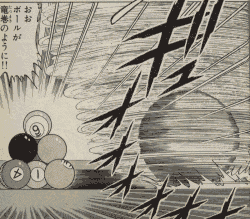 | トンデモ漫画大賞 スーパーショット(魔球)の出てくるビリヤード漫画って結構ありますよね。 ちょっと前なら「ブレイクショット」とか「撞球水滸伝」とか、最近だと「HOT SHOT」ですよね。 大抵ムチャクチャ漫画なんだけど、撞球王があえてトンデモ漫画NO.1に推すのはこの作品。 月刊少年ジャンプ87年11月号に掲載された「ハスラーボーイ」(作者 落合ひさお)(ジャンプスーパー・コミック「呪いに挑んだ男達」に収録) なんでこの漫画がトンデモ漫画NO.1なのか、ちょっと見てくださいヨ。 主人公神 球兵とハスラー千石の戦いを描くという一回限りの読み切り漫画ではありきたりなストリーなんだけど、次から次へとスーパーショットが出てくるんですわ。それもトンデモないショットばかり・・・ 球兵と千石の最初の戦いで千石がブレイクショットすると一度散った玉がまた元の形に戻る。ただし1番と9番が逆で・・ ![]() ↑これブレイクで作るんスよ。 うおおおお〜 早くもスーパーショット(魔球)って魔球じゃないよ、魔法だよ。すでに。 そこまですべての玉をコントロール出来るのならさっさと9番を入れればいいじゃねえかと思うのは至極当然である。 しかし「ハスラーボーイ」の世界ではそんな常識は通用しない。 そんな常識を飛び越えた処に彼らは存在するのだ。この程度で驚いていては球兵と千石の戦いは最後まで見届けられない。 話し戻って、この1番ボールが8個の玉に囲まれているラック(?)を球兵くんはファールせずに崩せるのか。 簡単に崩せちゃったのである。 球兵くんはクッションを利用したジャンプボールで直接1番ボールに当て、9番ボールを落としちゃうのである。 だが、このあと千石さんの第2の魔球によって球兵くんは敗れる。(この魔球はそんなに面白くないので省略) 敗れた球兵くん、打倒千石にむけて特訓に入るのだが、その特訓というのがまた凄い。なんとキューで山寺の鐘をつくのだ。 ![]() 町中に響く鐘の音。球兵の師匠猿音さんも「いい音色だ」 って思いっきり近所迷惑なんだよ!! で、特訓の成果で千石さんの第2の魔球を破る球兵。 だが千石さん、究極の奥義を出す。 今度はブレイクすると1度散った玉が集まり1番ボールを8個の玉が囲んだ三角錐つまり的玉でピラミッドを作ってしまった。 ぐおおおお〜 手で作ったって難しいぞ、こんな形。 ![]() ↑クドイ様ですけどブレイクでコレ作るんスよ で、どうやって球兵くんはこんなピラミッドセフティーを破るのか? ![]() そう、球兵くん玉の回転で竜巻を作り、玉を崩し9番を落とすのだ! うん、やっぱトンデモ漫画大賞はこの作品!! |