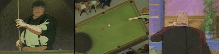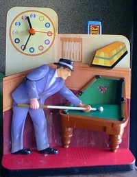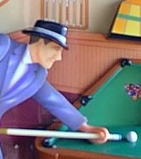 やっぱり変だよ!ビリヤード場面 「ルパン三世」にミネソタ・ファッツ登場。しかもハスラー兼殺し屋として! (152話 「次元と帽子と拳銃と」) このファッツ、どうみてもハスラーというより競馬の予想屋かノミ屋といったかんじ。 おまけにビリヤード場面のセリフと場面が全然でたらめ! ファッツ「4番5番を右コーナーに。7番を中央に」 2個しかあらへんやんか〜 しかも赤玉だけ! ファッツ「ワシの目の黒いうちはナンバー1になる夢は捨てるんだな」 勝てん!いろいろな意味で で、このファッツもどきのおっさん、キューに仕込んだ銃(ビリヤード銃)を殺しに使うんだけど この弾丸、バンクショットよろしく壁に当ると跳ね返るんですわ! それよりもなによりも許せんのが、ファッツに仕事を依頼する男。 名前はドン・ハゲロ!! 頭はチ・チ・チ○ポだぁ〜 ![]() |