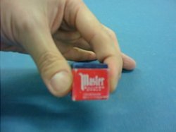 ハンカチを引くとギミックが糸に引っ張れ本物のチョークだけが残ります。