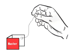 この見えない糸をギミックと指にテープでとめます。