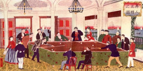 1870年(明治3年)横浜居留地玉突き 開化錦絵に登場