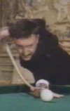 スティング2 1983(米) 監督 ジェレミー・ポール・ケーガン 出演 ジャッキー・グリーソン、マック・デイヴィス ★詐欺師をあつかったスティングの続編。前作でポール・ニューマンが演じていた天才詐欺師ゴンドーフをジャッキー・グリーソン(ハスラーでミネソタ・ファッツを演じた人)に、ロバート・レッドフォードが演じていたフッカーをマック・デイビスにそれぞれ替わっている。 今回は”コニーアイランドのウルフ”マカリンスキーから八百長ボクシングでカモる話。 ★ゴンドーフがマカリンスキーとビリヤードの勝負をする場面がある。バンク競争(手玉をヘッド・ライン上から2ポイントのところに置き、1ポイントほど離した的玉をフット・スポット側の短クッションにバンクさせ、手前側のコーナーポケットに入れる。これを5回ずつやり、多く入った方が勝ち。)でゴンドーフが5本全部成功させ(最後の1本は余裕のスリークッションバンク。 なにしろミネソタ・ファッツですぜ。当然といえば当然)怒ったマカリンスキーが「おまえ、ハスラーだな。」というと、ゴンドーフが「ハスラーと言うな!」と怒る楽屋オチも。 |